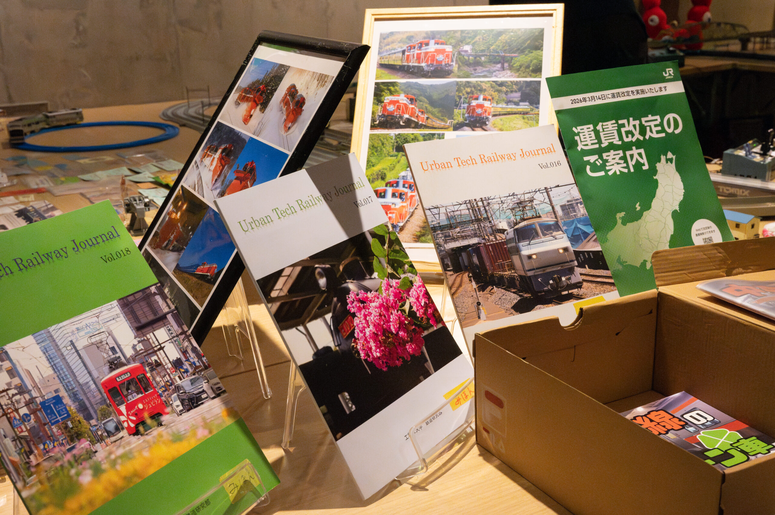 鉄道研究部さんの展示では、鉄道模型の展示を中心に、来場者が実際に模型を操作できる運転体験や、部の活動内容をまとめた部誌の配布を行っていました。会場には精巧に作られたジオラマが広がり、多くの来場者が足を止めて見入っている様子が印象的でした。