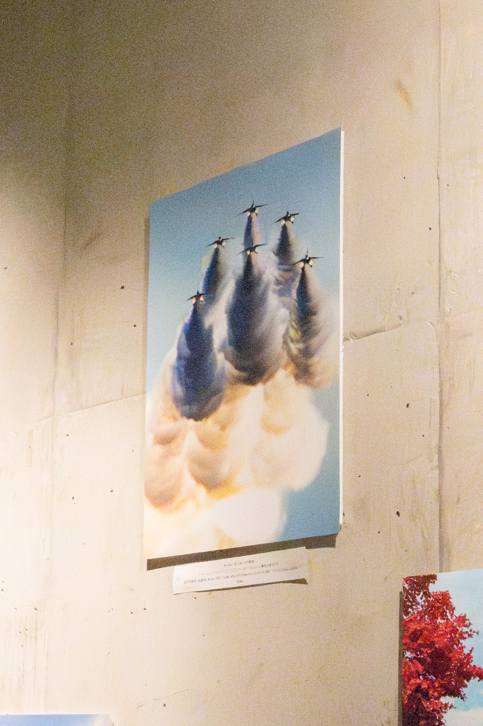A. 私の場合は、ブルーインパルスが自宅の近くを飛んだときに撮影した写真を展示しました。特に難しかったのは雲の描写です。空や雲の色の微妙な違いを写真でうまく表現することが思った以上に難しくて、何度も撮影や現像を試みました。光の加減や雲の形、背景の建物とのバランスなど、細かい部分にこだわりながら仕上げました。