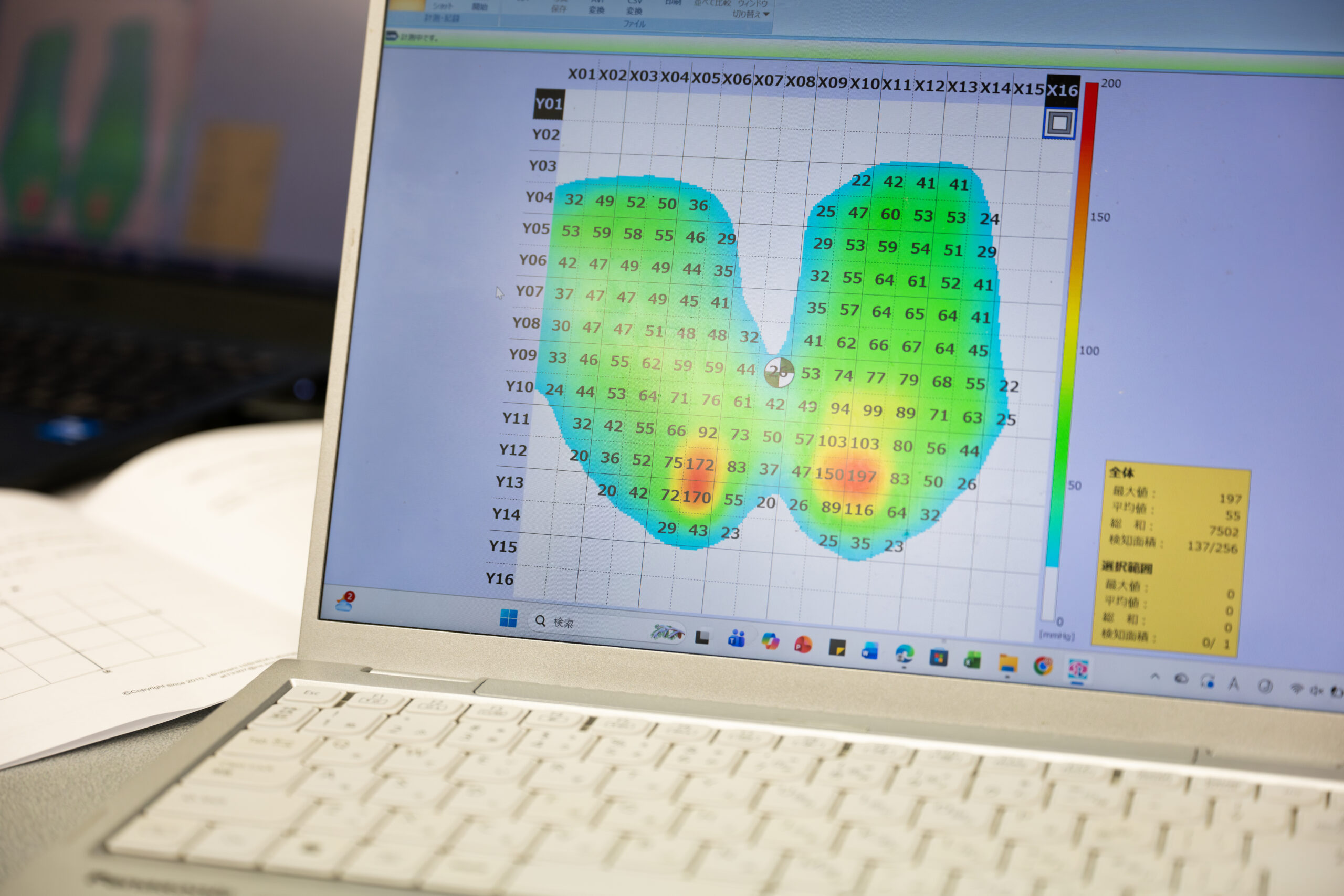 次に体験したのは着座姿勢の測定です。普段どのくらい椅子に座っているかなどについてのアンケートに回答後、圧力マットを用いて椅子に座っている際にどこに体重がかかっているのかを視覚的に見ることができます。私は、全体的にバランスの取れた座り方になっていて良い状態だと分かりました。一方で、普段意識せずに座っている姿勢にも癖や偏りが生じる可能性があると知り、驚きました。圧力が可視化されたことで、自分の姿勢を客観的に見直す良い機会になり、今後は正しい着座姿勢をより意識したいと強く感じました。