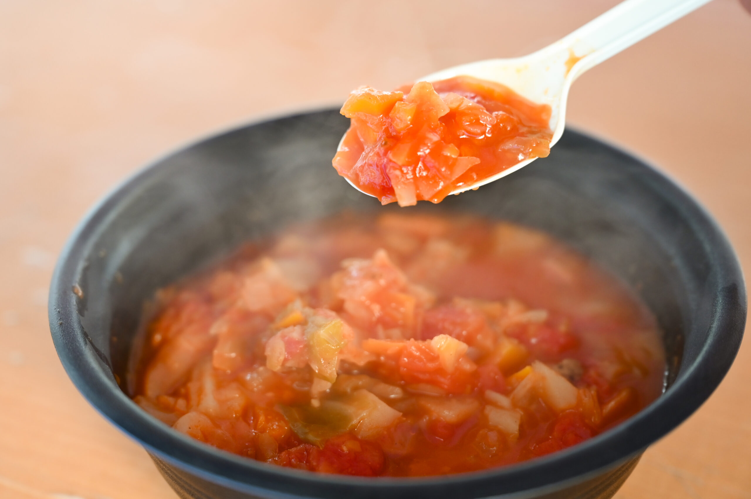 最初にほのかなトマトの酸味がきてその後にトマトの甘みが広がっていくコクのあるスープでした。