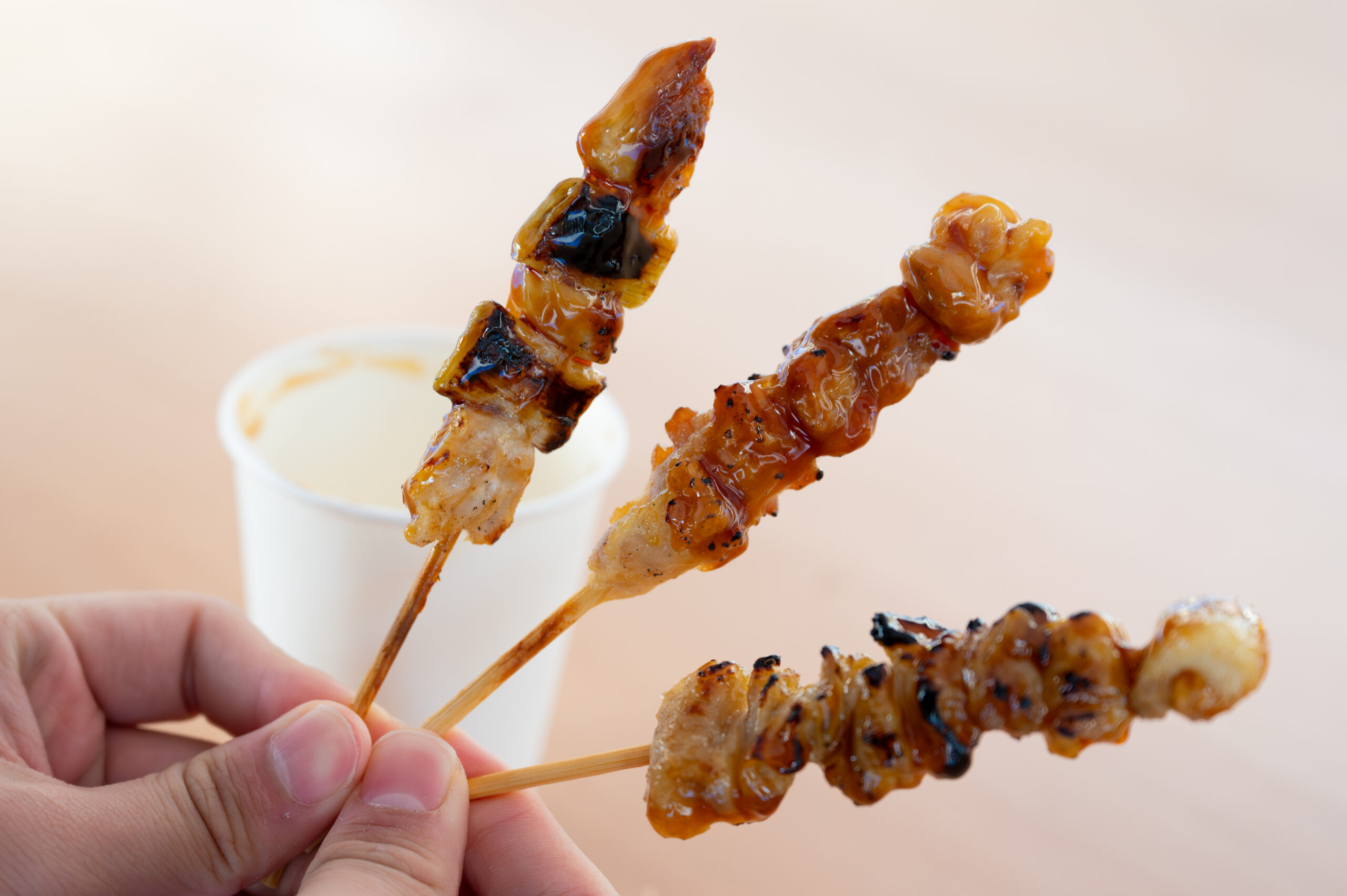 焼き鳥は小さめで食べ歩きしやすいサイズ感でした。