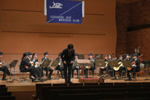 最後に、第三部で特に印象に残ったのは、高橋宏樹作曲「文明開化の鐘」です。元々は金管楽器による華やかな合奏曲として知られる楽曲ですが、今回はマンドリンクラブの部員の方が編曲し、演奏されました。金管の力強さとはまた違い、マンドリンならではの柔らかい響きが加わることで、より透明感あふれる音楽へと生まれ変わっていました!